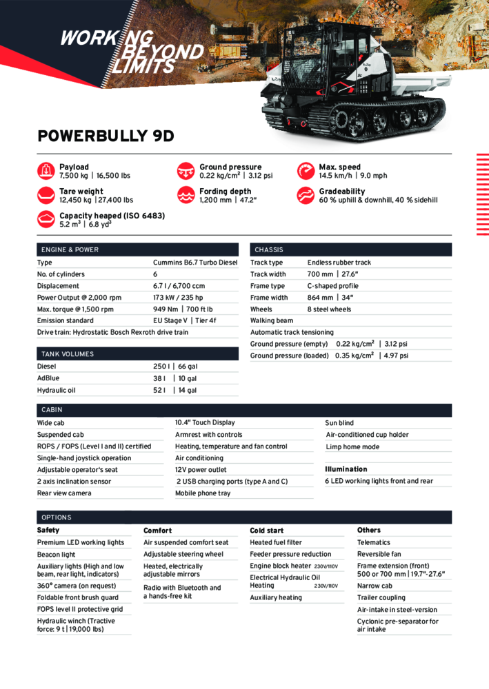 Due to the large ground contact of our rubber tracks, the PowerBully is your low ground pressure (PSI) track carrier that does not disturb the terrain you are working within.